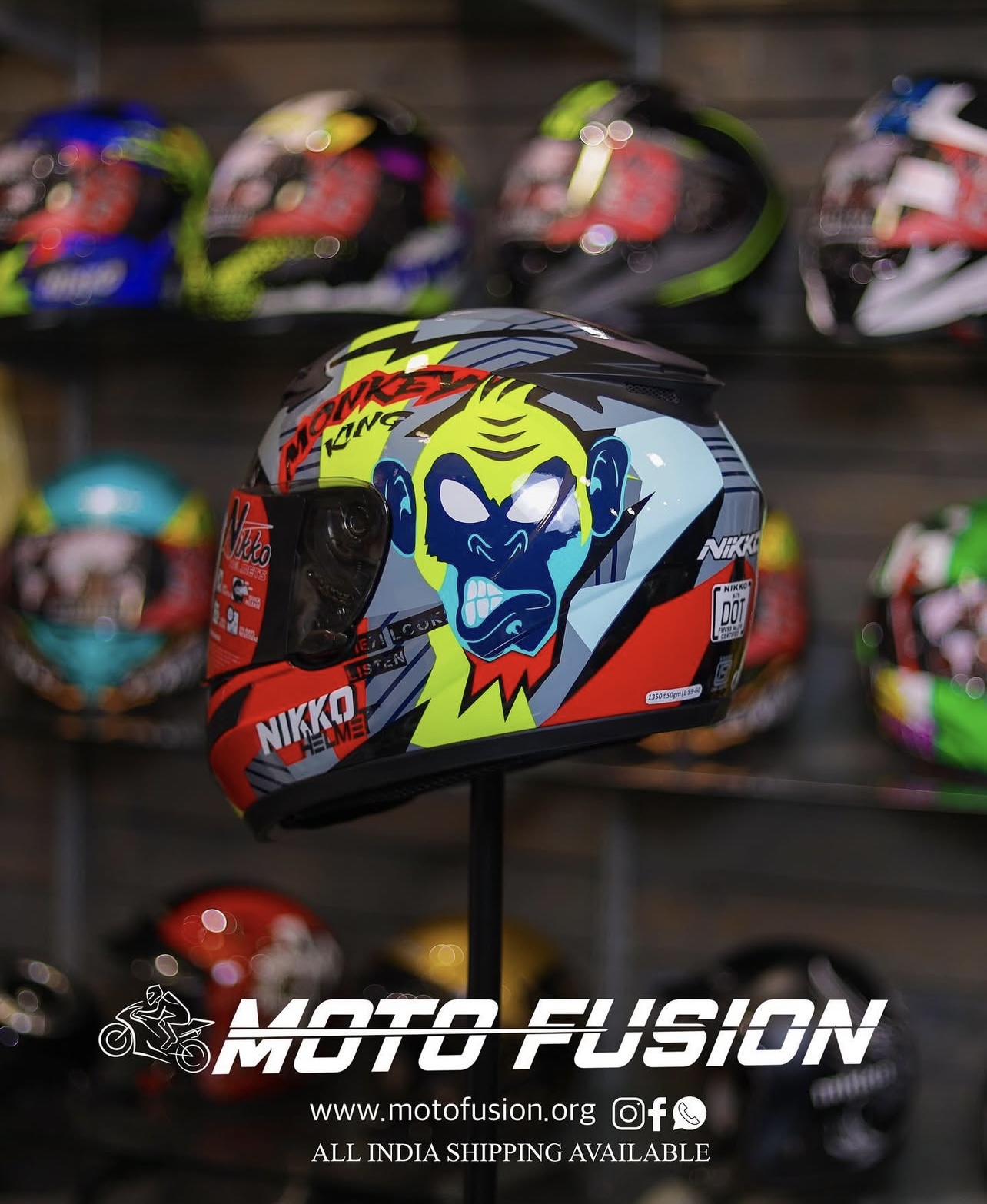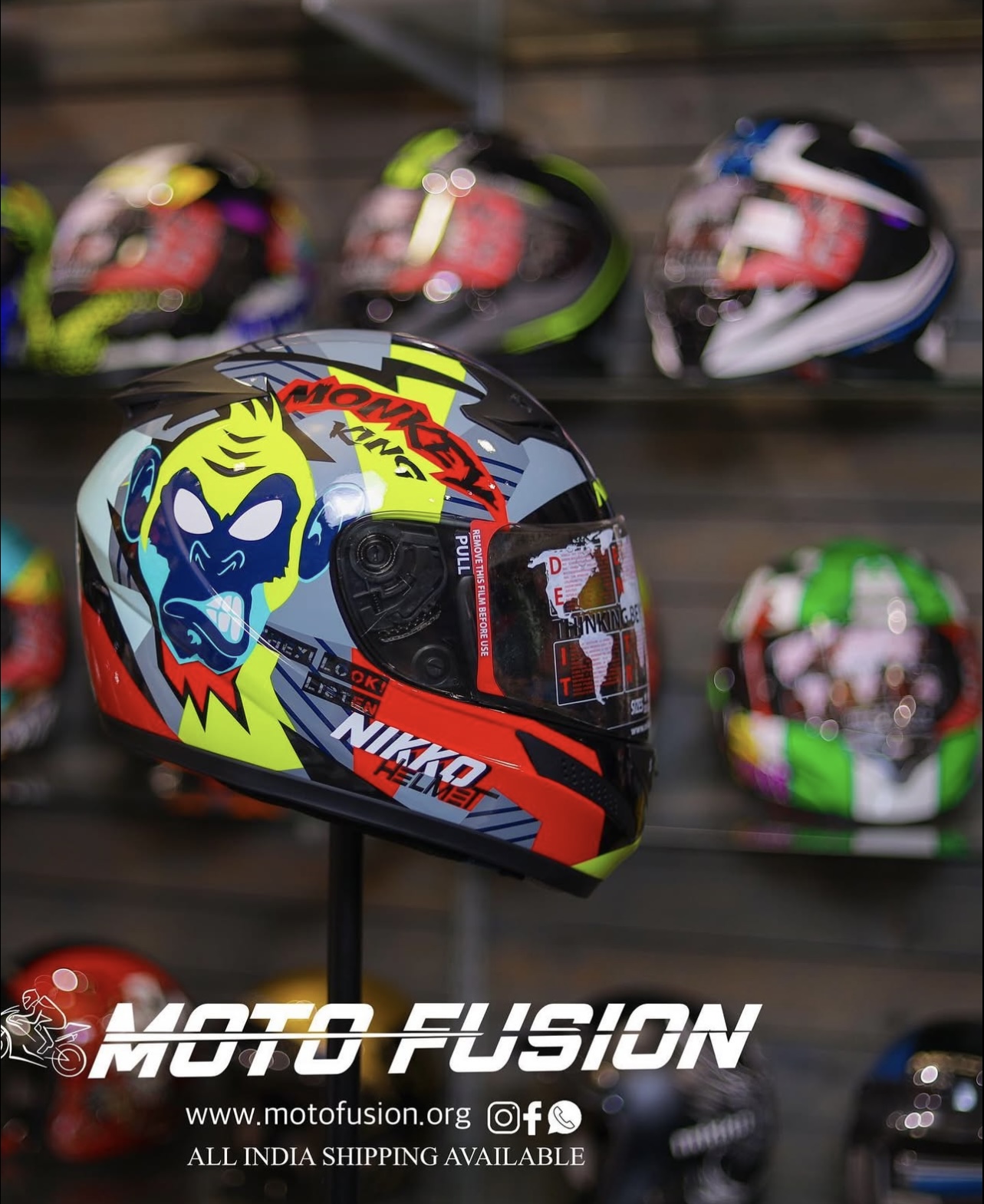✔ Striking Monster King Design – The fierce blue monster graphic with a bold red, black, and yellow color combination makes a statement wherever you ride.