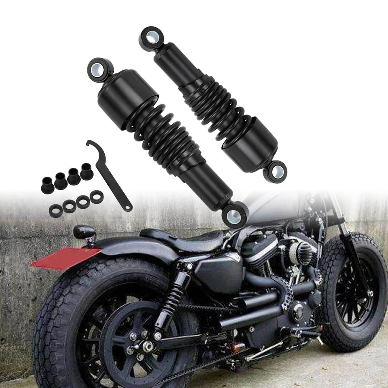 Upgrade your Harley-Davidson Sportster with this high-performance 10.5” rear shock absorber designed for a smoother, more controlled ride. Perfectly compatible with Harley Sportster models like Iron 883, Forty-Eight, and 1200, this shock absorber enhances your bike’s suspension by reducing vibrations, absorbing bumps, and improving overall road stability. Whether you’re riding solo or with a passenger, this rear suspension ensures better handling, increased comfort, and a lowered stance for a more aggressive look. Built with heavy-duty, high-quality materials, it offers long-lasting durability and excellent performance on highways, city roads, or rough terrain. The 10.5-inch size is ideal for riders looking for a balance between style and functionality, while the adjustable preload lets you customize the suspension based on load and riding conditions. Weather-resistant and easy to install, this rear shock absorber is a must-have upgrade for any Harley Sportster owner who values both comfort and performance.