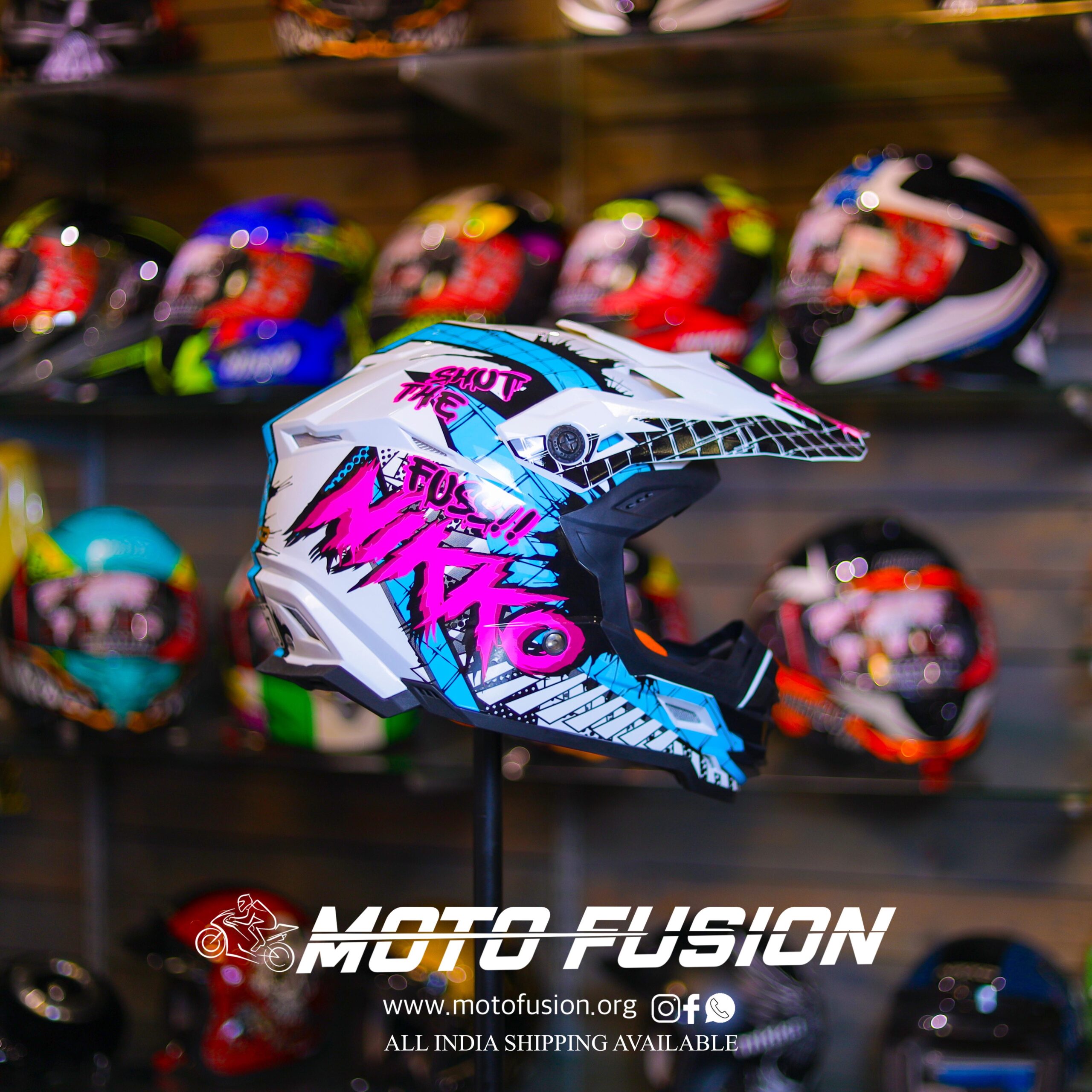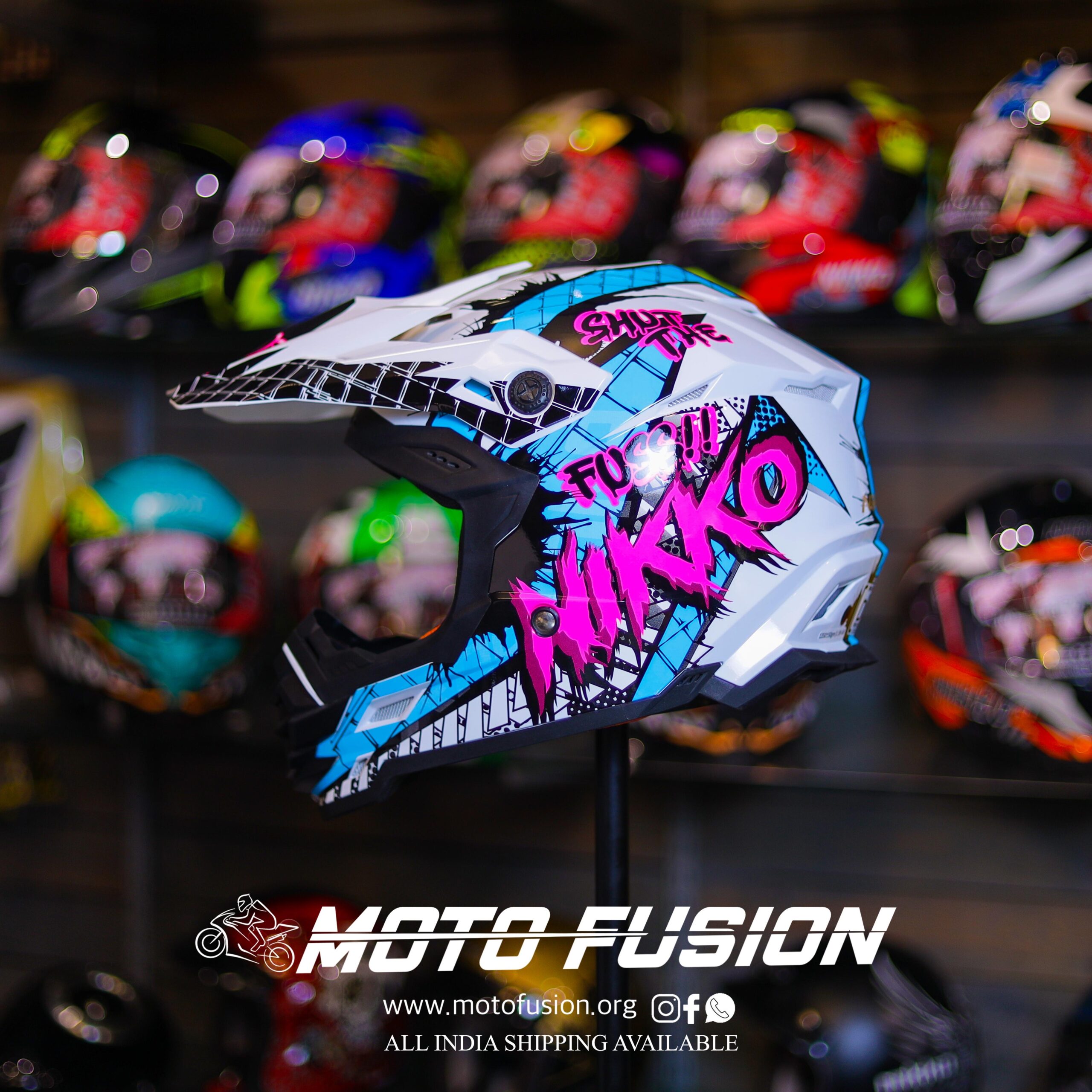 Featuring an eye-catching graffiti-inspired look with striking pink and blue graphics, the Nikko Shut the Fuss Helmet is not just about protection—it’s a statement of attitude and adventure. The unique “Shut the Fuss” branding adds a rebellious edge, perfect for riders who love to break boundaries.