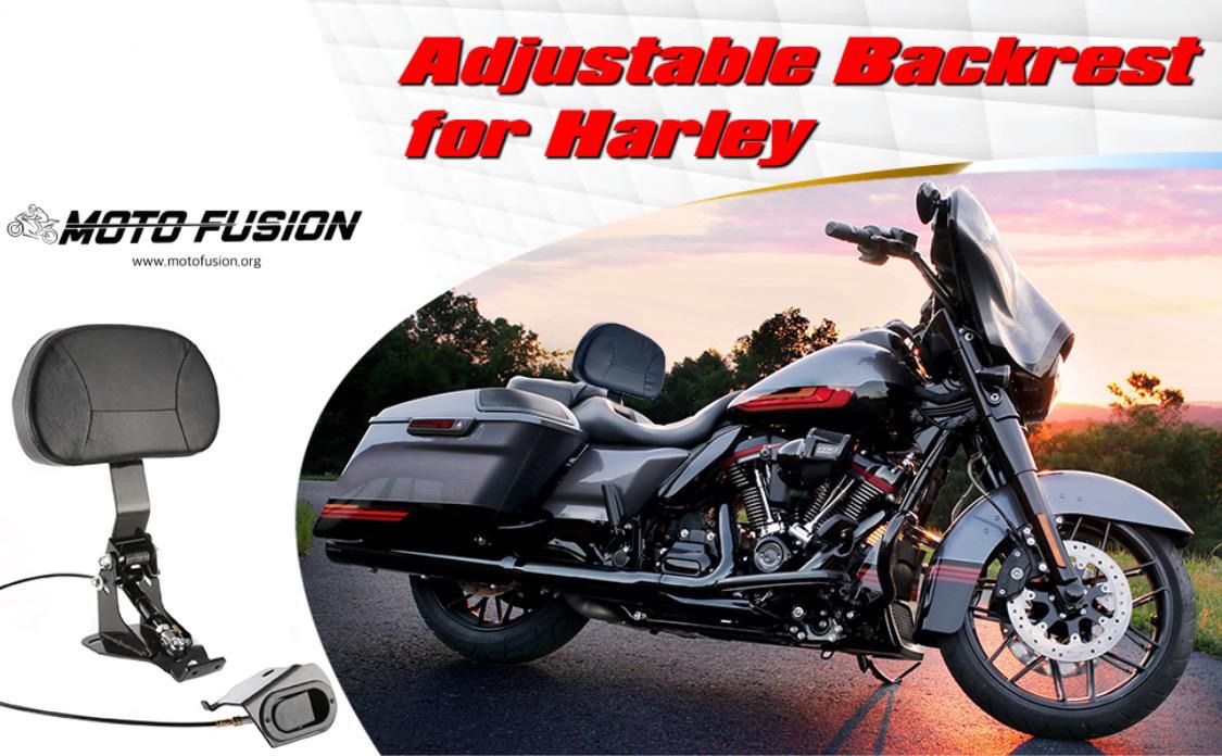 Riders Adjustable Backrest for Harley Touring offers premium lower back support for long rides. Designed for Harley-Davidson Touring models, it features adjustable height and angle for perfect riding posture. Made with heavy-duty metal and soft cushion padding, this durable backrest ensures comfort, reduces fatigue, and matches the Harley’s classic style. Easy bolt-on installation with foldable design for a sleek look. A must-have Harley Touring accessory for every rider.